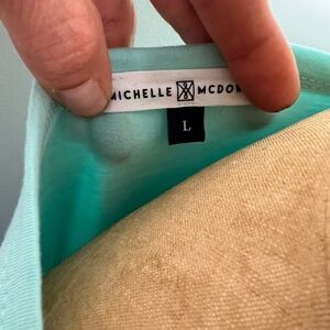 Michelle McDowell puff sleeve short sleeve t-shirt mint green and light blue