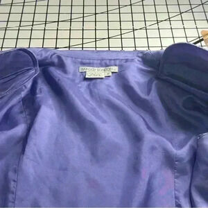 This stunning Maggy London jacket is made from 100% silk and comes in a beautiful shade of purple. It is the perfect addition to any wardrobe, providing a touch of elegance and sophistication for any occasion. With its classic style, shoulder pads and faux pockets, this jacket is ideal for travel, parties, formal events, workwear, and business settings. It is available in size 10 and is designed for regular size types. The outer shell material is of the highest quality, ensuring that the jacket is both comfortable and durable. Faux pockets finish the sophisticated look. Excellent like new condition. Smoke free home. See pictures for measurements. Ships quickly. Item #154