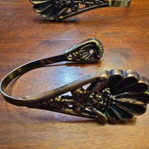 Vintage Ornate Brass Round Medallion Flower Curtain Tie Back Holders