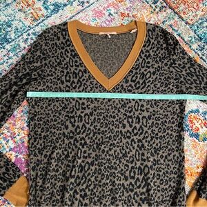 Scotch & Soda Long Sleeve Wool-Cotton Blend Knit Sweater Leopard Print V Neck