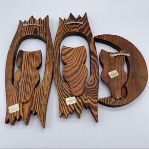 Vintage Hand crafted Wooden Owl Wall Decor, Set of 3. Made in Montana. Please see pictures for actual condition, as they are vintage and show wear.