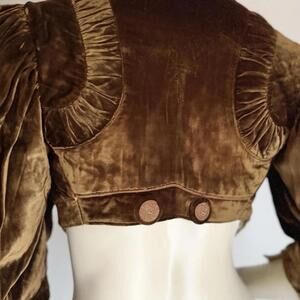 Beautiful Antique Vintage Puff Sleeve Edwardian Ruched Cocoa Brown Velvet Jacket with Floral Design and Huge Puff Sleeves. Cropped Bolero Style.