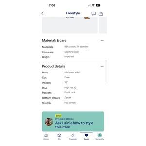 Vigoss brand, women's size 31. Very stretchy and very flattering. Darker wash with no distressing. Purchased from Stitchfix for $74 and worn one time before I lost too much weight to wear them. Double button closure. Smoke free home.