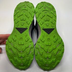 Traction: The rubber outsole has a shockwave-like pattern with nubs, inspired by bike tires, to offer multi-directional grip for uphill and downhill security.
