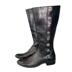 Nicole Womens Black Leather Knee-High Silver Concho Riding Western Boots 7.5