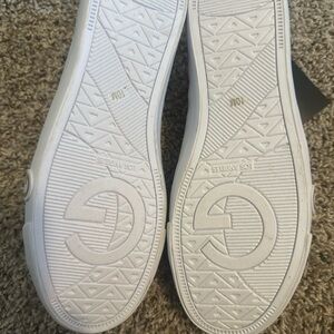 GBG Los Angeles White Quilted Sneakers with Gold Accents