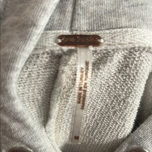Free People Distressed Rips Holes Cropped Zipper Closure Gray Hoodie Sweatshirt, size medium, has pockets.