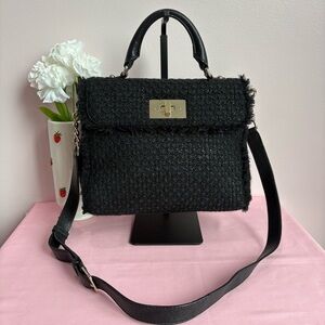 Kate Spade Black Tweed Top-Handle Handbag with Crossbody EUC