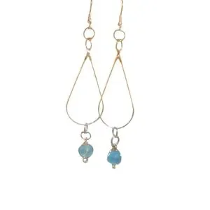 These elegant drop earrings feature a delicate gold frame with a charming blue accent. Not super heavy.
