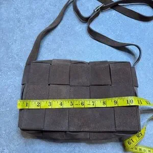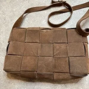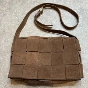 Isadora Woven Suede Leather Made in Italy Crossbody Purse in brown mousse