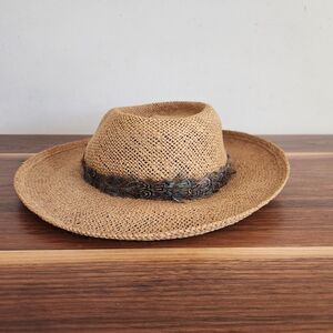 DETAILS: Borsalino Vintage Panama Hat Woven Brown Fedora Made in Italy Size Large