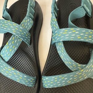 Chaco Turquoise White Yellow Unisex/Girls Summer Ready Sandals EUC Fast Ship