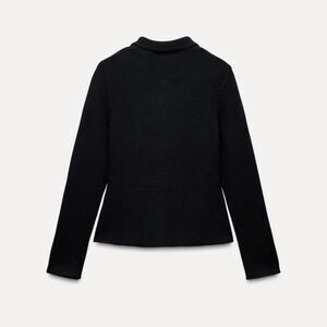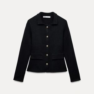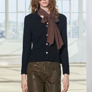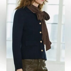 Navy Blue Gold-Button Collared Heavy Knit Blazer Jacket Cardigan Sweater (NWT)