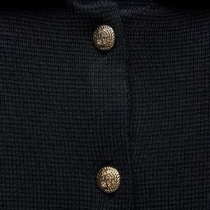 Navy Blue Gold-Button Collared Heavy Knit Blazer Jacket Cardigan Sweater
