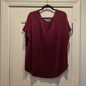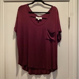 Elegant burgundy top with a stylish pocket detail. Perfect for any occasion. Excellent Condition!