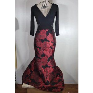 New without tags 95% Polyester, 5% Spandex; combo: 52% Polyester, 48% Rayon; Lining: 100% Polyester Red/ Black Dry Clean Only Brocade skirt Mermaid bottom Measurements: Length: 57" Sleeve length Top: 18" Sleeve length Under: 13" Bust 32" Waist 26" Hips: 34" C157 -1334
