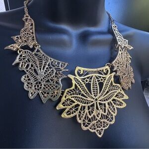 Intricate gold filigree design. Bold and stylish statement piece.