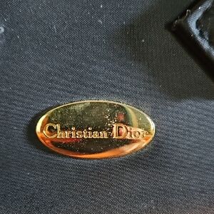 Christian Dior Vintage Gold Logo Black Nylon Makeup Cosmetic Bag