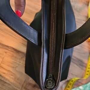 This elegant black women's cosmetic bag is perfect for any occasion. Its sleek design and rich color make it a versatile accessory for traveling. In beautiful preowned condition. Has 2 small areas of lighter color, see photos above. Inside looks great, see photos above as they are part of my description. Open to reasonable offer.