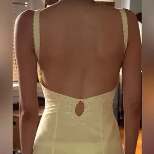 Selling this brand new with tags Mirror Palais dress in pale yellow. This dress has never been worn and has been sitting in my closet. The cut is super flattering and elegant with beautiful daisies embroidered on the neckline and back of the dress.