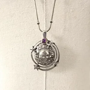 Celestial solar system pendant on silver tone chain. Not real silver.