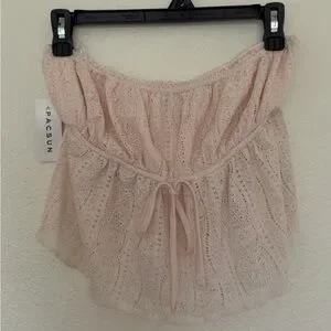 Chic lace strapless top from PacSun. Features a delicate blush hue. Under-layer of pink fabric for bust. Ideal for stylish layering or wearing alone, soft lace material!