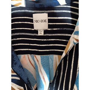 Nic + Zoe Sapphire Shades Shirt Button Up Print Bold Pinstripe Down Front & Cuff