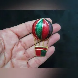 Kim Rogers Vintage Hot Air Balloon and Connected Basket Brooch With Red, Green, And Purple Hues Represented. Excellent Condition. Price Tag On The Back of The Cardboard Has Been Partially Removed. Item Has Never Been Worn To My Knowledge. It Belonged To My Mother. Made Of Metal And Enamel. Measures 2 3/8” Tall. Locking Pin Back. Beautiful And Whimsical Piece To Add A Pop Of Color And Fun To Any Outfit.