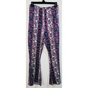 Bohemian Striped Pattern Womens Lounge Pants With Elastic Waist Flare Leg
