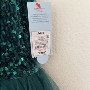 Elegant teal dress with sparkling sequins and soft velvet backing. Never worn with tags. Perfect for formal occasions. Sleeveless design with a flowing skirt.