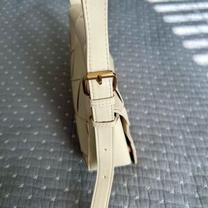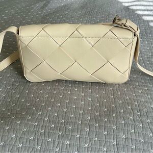 Chic cream shoulder bag with quilted design. Perfect for versatile styling. Vegan. Eco-friendly. Bag pattern reminds me of Bottega Venetta 😁