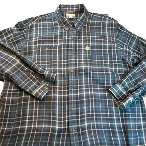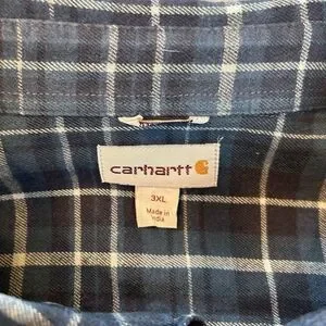 Carhartt Men's Relaxed Fit Blue Plaid Men's Button Flannel Down Size 3XL 100% Cotton - Dry Cleaned and Starched