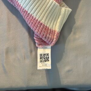 Stay cozy and stylish with this elegant pink and cream sweater. Perfect for any occasion, this sweater offers both comfort and fashion.