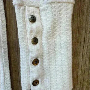ANTHROPOLOGIE CHASER boho cream waffleKnit long-sleeve Shirt button-up cuff cozy.