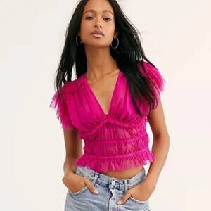 Free People Making Me Smile Pink Sheer Short Sleeve Blouse Women's Size Medium