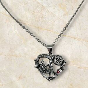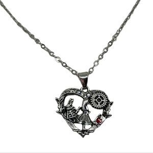 Alice In Wonderland Necklace Heart Shaped Pendant White Rabbit Ace Hearts Card