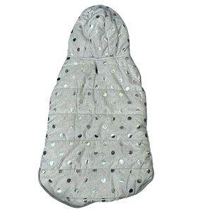 Make me a reasonable offer on this gray silver polka dot fleece lined dog puppy coat jacket by Frisco!