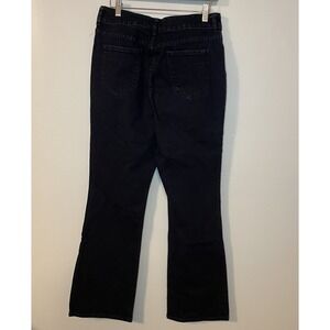 The Chicos 1.5 Platinum Women's Jeans in dark blue are a stylish and versatile addition to any wardrobe. Made from cotton denim with a solid wash, these bootcut jeans feature a zip closure, 5-pocket design, and button accents. The regular fit and size make them comfortable and easy to wear for everyday use. Perfect for a casual yet chic look, these jeans can be machine washable for added convenience. Show off your favorite pair of shoes with these classic and on-trend Chico's jeans.