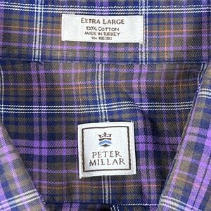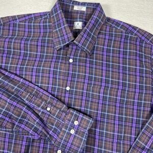 Peter Millar Shirt Mens XL Purple Brown Plaid Button Front Long Sleeve Cotton
