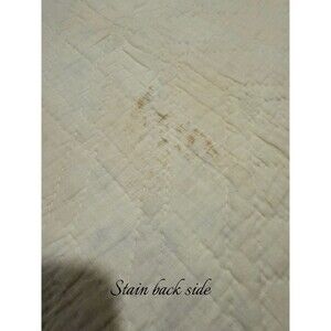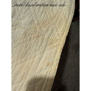 Please note- this is a beautiful quilt but it has seen some years and has some flaws! There are many stains- please see pics, as well as 3 different repair patches, some stitched holes, some tears/fraying, and discoloration. I have not tried to get any of the stains out. They may come out but I didnt wanna try! Despite its flaws its a beautiful piece. Please make sure to look at pics closely. Thanks for looking!