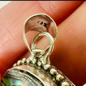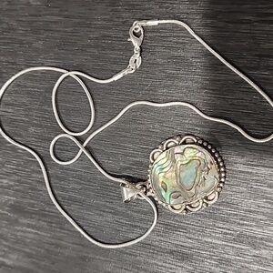 Elegant sterling silver pendant necklace featuring a stunning abalone shell. Perfect for adding a touch of natural beauty to any outfit.