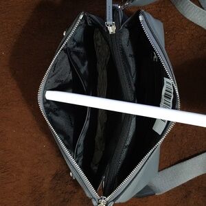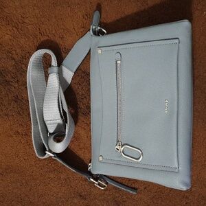 Elegant DKNY crossbody with a sleek design. Features a front zipper pocket and adjustable strap. Perfect for daily use.