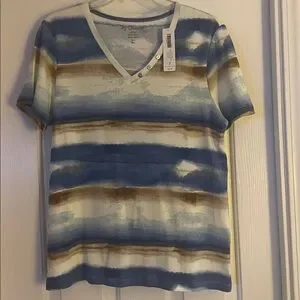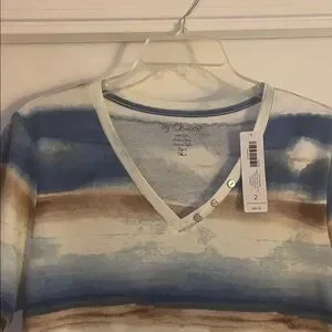 Chico’s Blue and Brown Striped V-Neck T-Shirt new Size L
