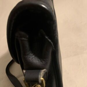 This elegant Coach shoulder bag in classic black is crafted from high-quality leather, offering a timeless and sophisticated look. Its structured design and smooth finish make it perfect for both business and formal occasions. The bag features a convenient shoulder strap for easy carrying. There is a corner that has come unstitched inside, but does not effect the functionality of the bag. Easy to repair if you deem necessary.