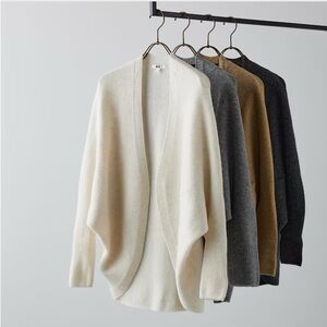 Uniqlo Gray Soufflé Yarn Oversized Cocoon Cardigan Wool Sweater Size Small