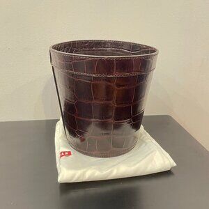 New Staud Britt Croc-Effect Leather & Suede Bucket Bag Brown $375