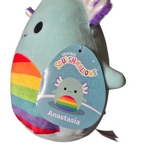 Charming Squishmallows plush with a rainbow belly. This is an 8 inch plush toy, new with tags.