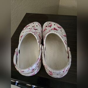 Kids Classic Pool Party Crocs Clog – Flamingo Print – White – Size J1