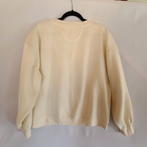 Elegant crew neck sweater. Features gold button accents on shoulder. Soft and stylish.