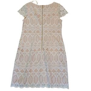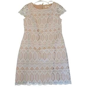 Eliza J Scalloped Lace Mini Dress Womens Size 8 White Tan Crochet Cocktail Party